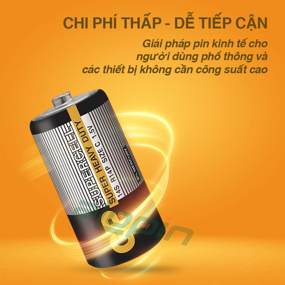 🔋 Pin GP Supercell R14P / 14S Size C 1.5V – Pin Than Kinh Tế, Ổn Định Cho Thiết Bị Gia Dụng