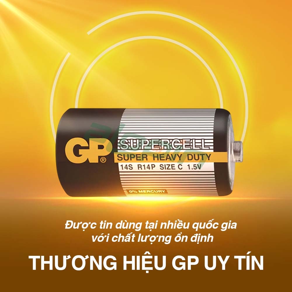 Sản phẩm thuộc dòng Supercell của GP Batteries – thương hiệu pin nổi tiếng toàn cầu, được nhiều gia đình và cửa hàng tin dùng nhờ độ bền ổn định, an toàn và giá thành hợp lý cho nhu cầu sinh hoạt hằng ngày.
